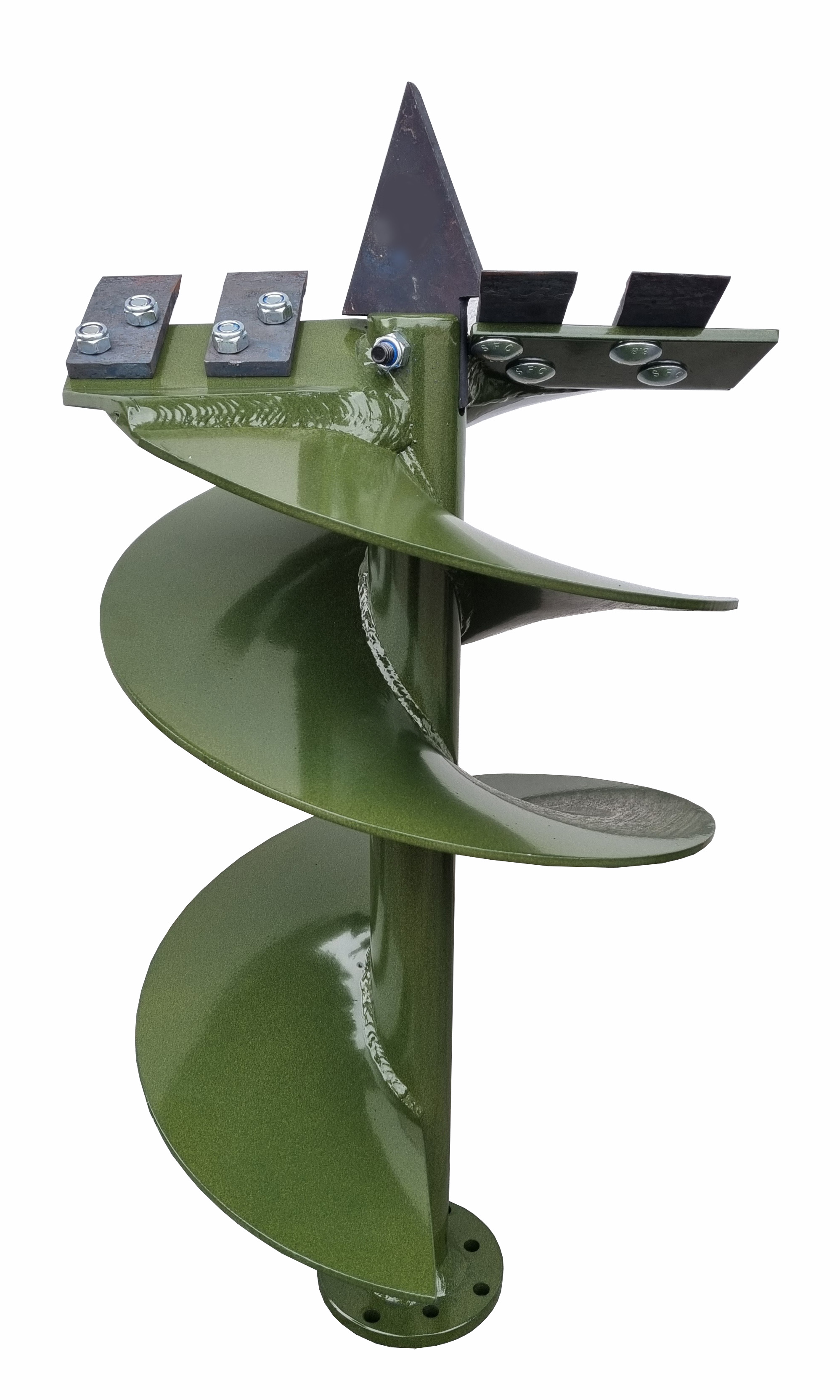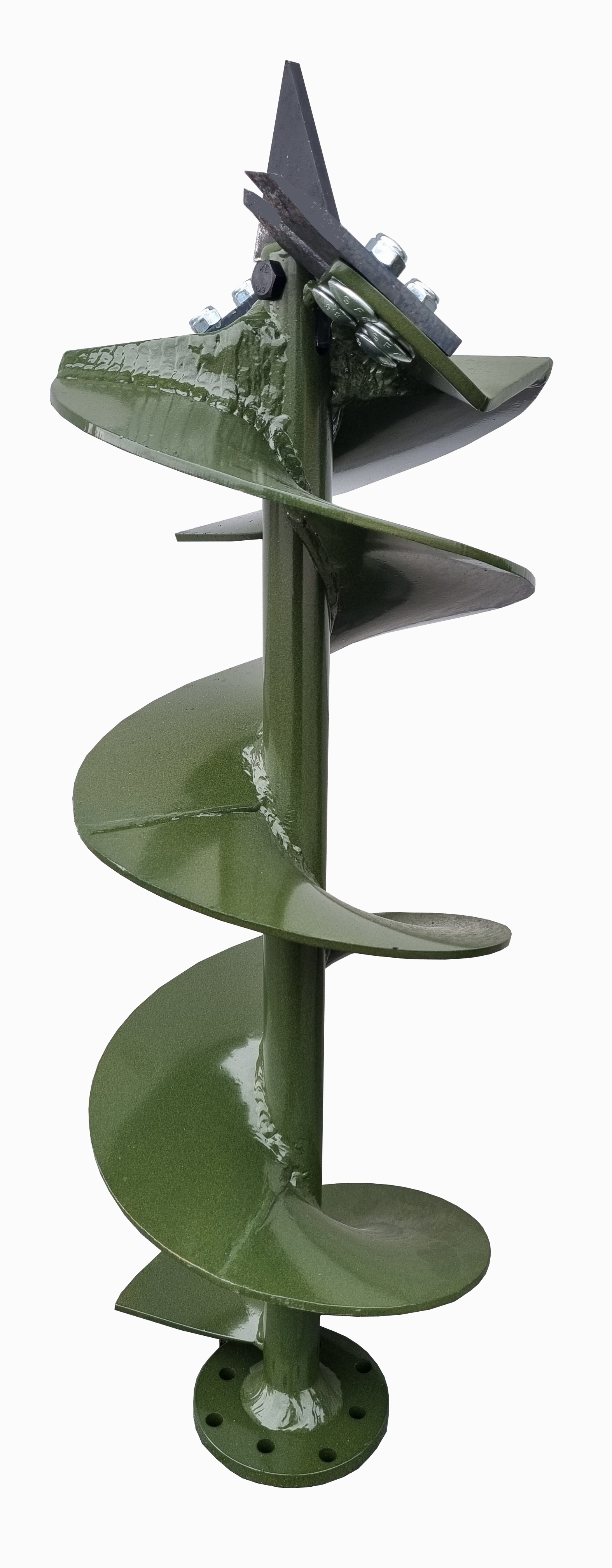 Sama spirala je savijena kao mašinski element, debljine 6mm, sa dva početka na kojima je zavaren naoštreni manganski čelik debljine 10mm koji omogućava sporije habanje i bolji i dugotrajni rad svrdla.